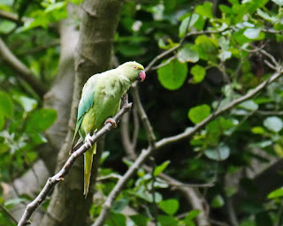 One of the first birds I heard was... a Ring-knecked Parakeet.. used to get dozens in my garden when I lived close by.