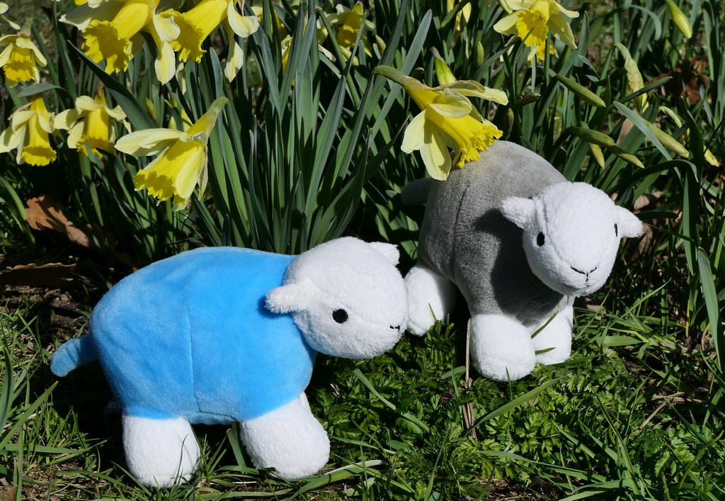 Parsely & Sage, Herdy sheep enjoying the snowdrops and sunshine