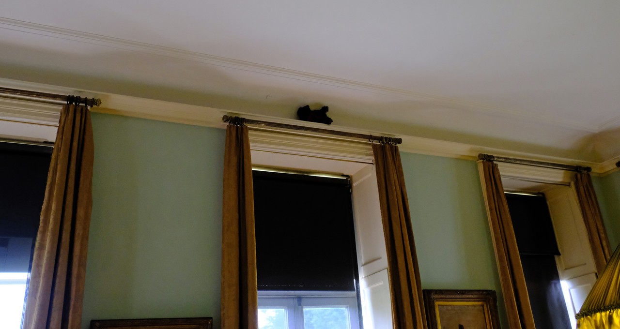 Poor dog.. so high up against the ceiling!